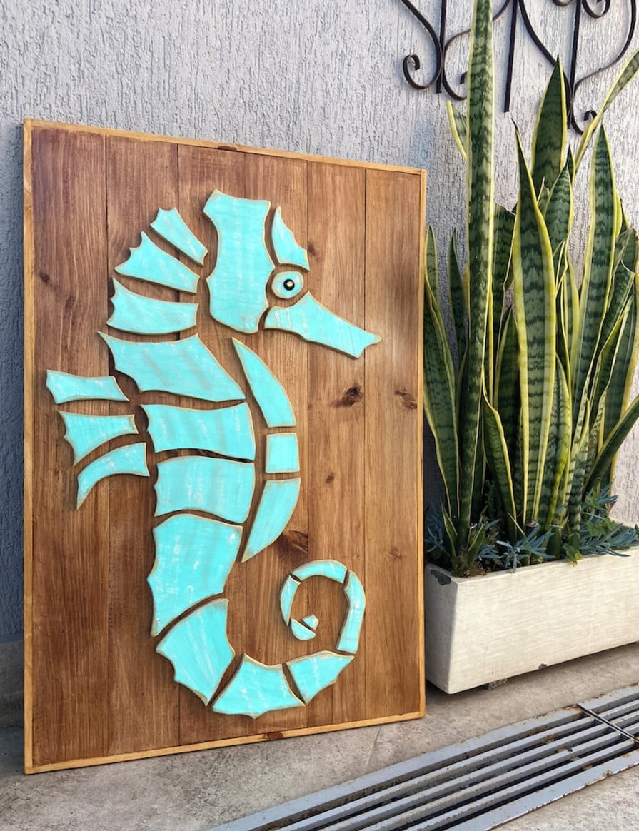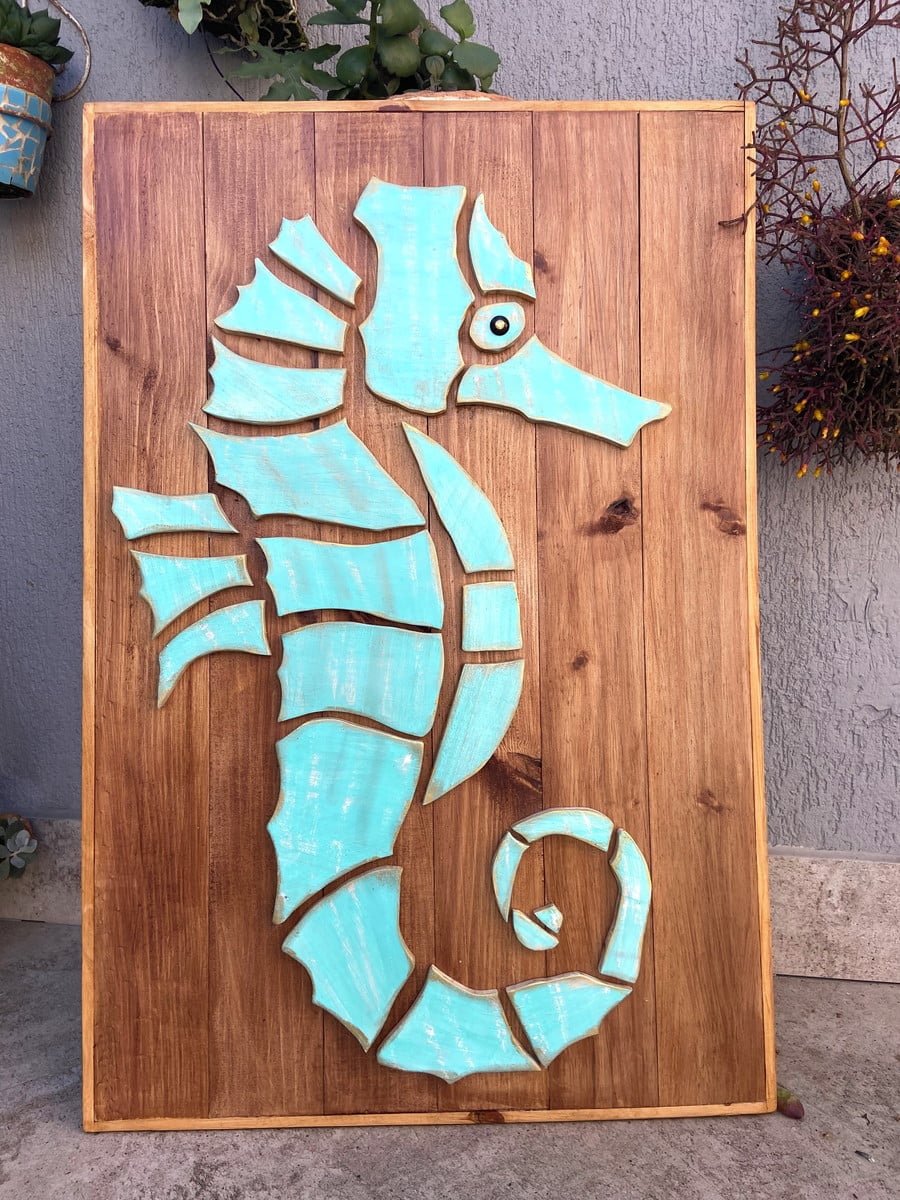 Quadro rústico em madeira natural, confeccionado e pintado a mão, linda peça para decorar sua casa com aquele frescor do oceano.
