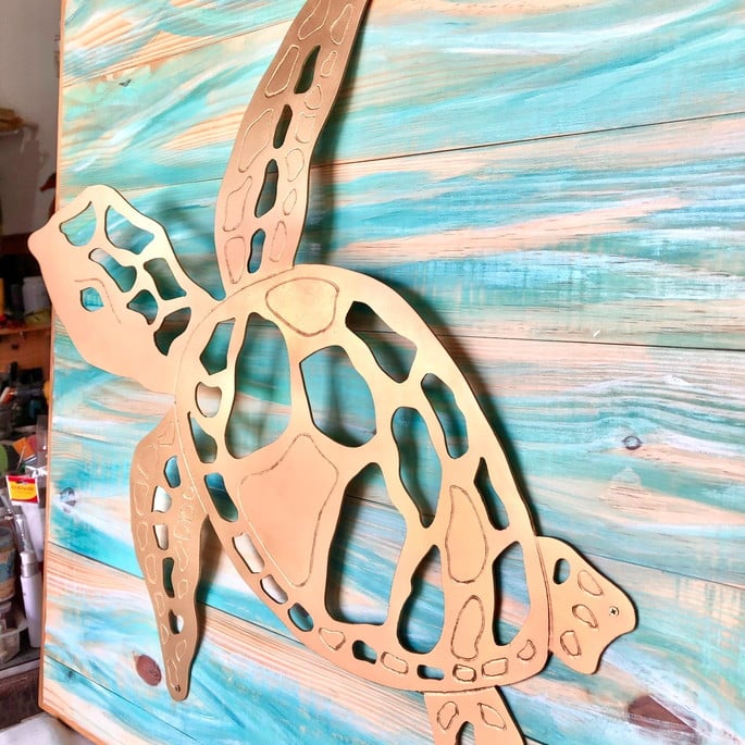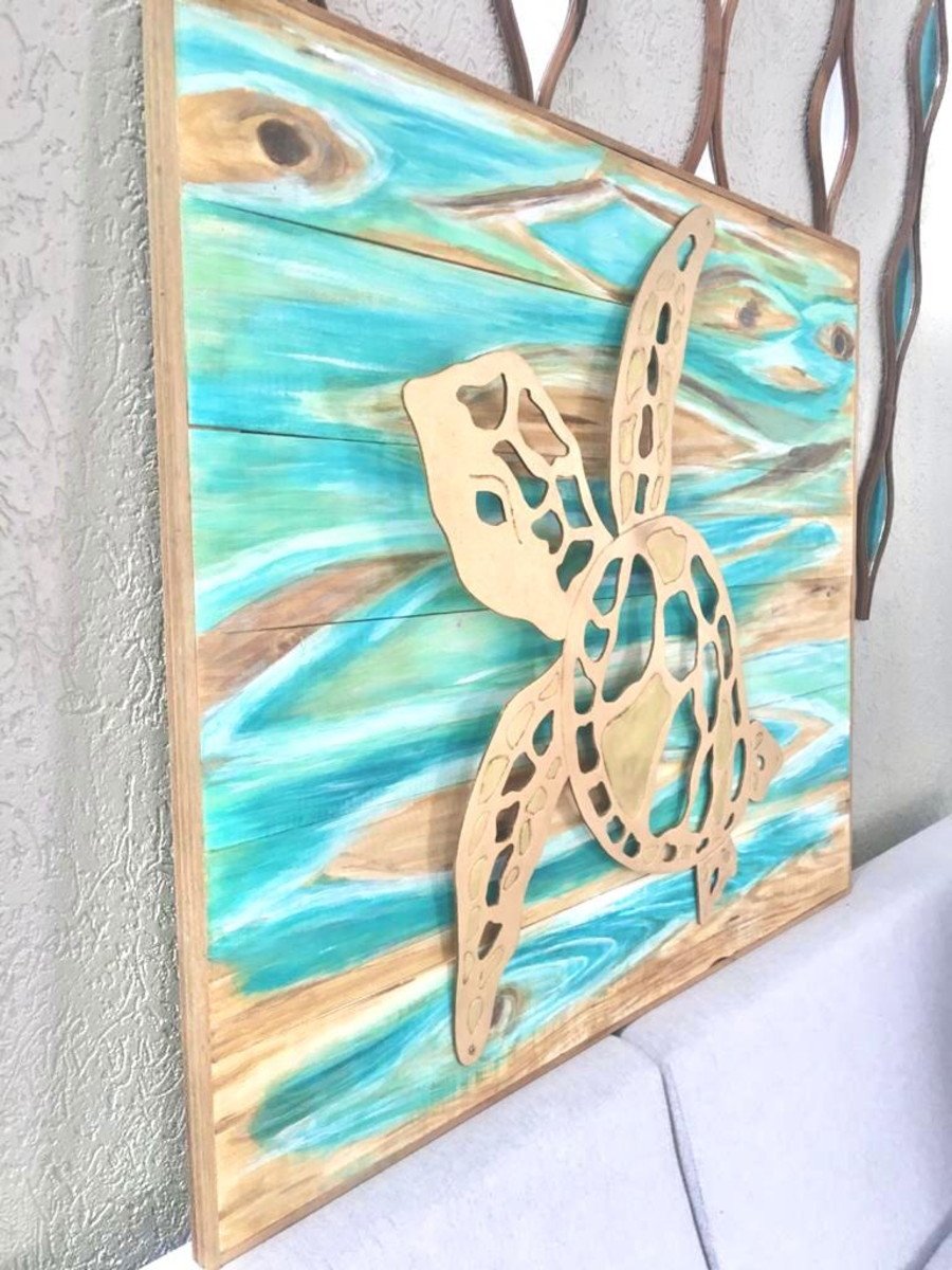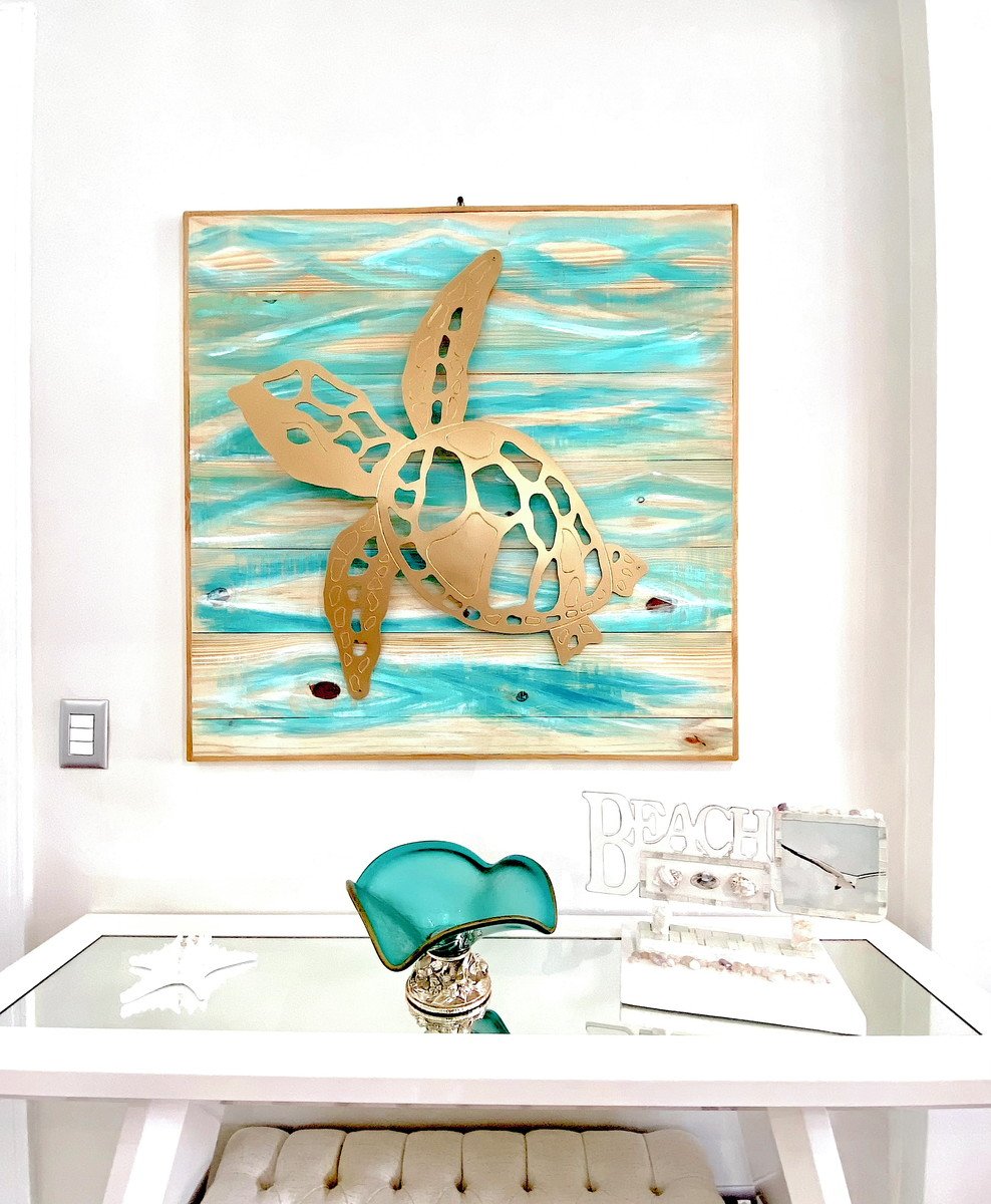 Lindo quadro em madeira natural, todo confeccionado e pintado a mão, com tartaruga recortada e sobreposta com elevação em 3D. Pintura especial 3 demãos na tartaruga ! Finalizada em dourado! Mto linda!